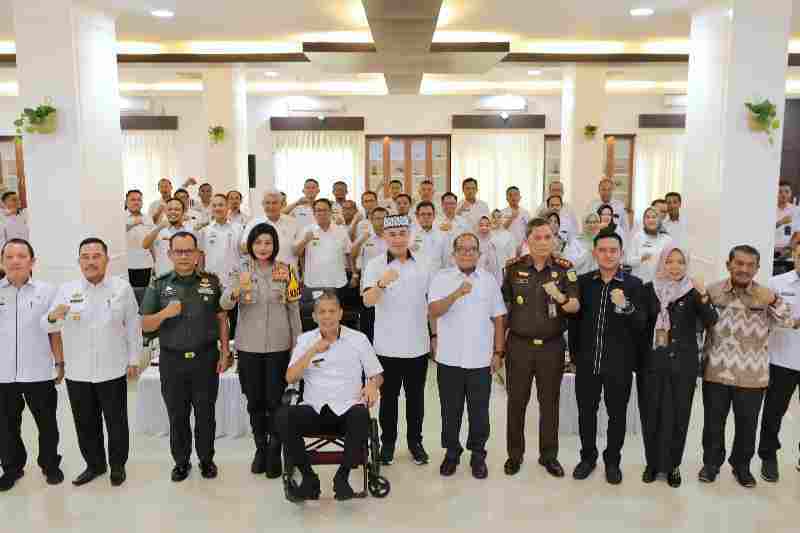 PESAWARAN – Pj. Gubernur Lampung Samsudin melaksanakan silaturahmi bersama Bupati dan Wakil Bupati Pesawaran dan diikuti jajaran Forkopimda dan ASN di Aula Kantor Bupati Pesawaran, Rabu (12/02/2025