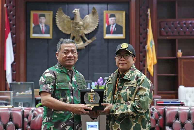 BANDARLAMPUNG – Pj. Gubernur Lampung Samsudin menerima kunjungan Asisten Potensi Maritim (Aspotmar) Kasal Mayjen TNI Mar Hermanto terkait kegiatan Ketahanan Pangan di Piabung, Pesawaran 10 juli mendatang, di Ruang Kerja Gubernur Lampung, Kantor Gubernur, Bandarlampung, Jum’at (5/7/2024).