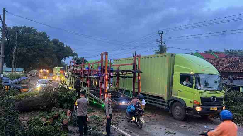 Tanpa menunggu waktu lama, personel Piket Posko Tanggap Darurat Bencana Hidrometeorologi langsung meluncur ke lokasi kejadian. Dipimpin oleh AIPTU Bambang Hadral bersama tim, petugas berjibaku di tengah kondisi gelap dan potensi bahaya demi mengevakuasi batang pohon yang menghalangi badan jalan.