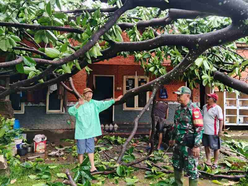 Bandar Lampung, 29 April 2026 – Babinsa memantau Hujan deras disertai angin kencang yang melanda Kota Bandar Lampung pada Rabu siang mengakibatkan sebuah pohon besar tumbang di Jalan Terusan Ir. H. Juanda, RT 010 Lingkungan 01, Kelurahan Sumur Batu, Kecamatan Teluk Betung Utara(TBU). Pohon tersebut menimpa atap rumah milik Bapak Agung Bayu Aji (55 tahun) dan menutup total badan jalan di kawasan Hutan Kera, mengganggu akses transportasi warga.