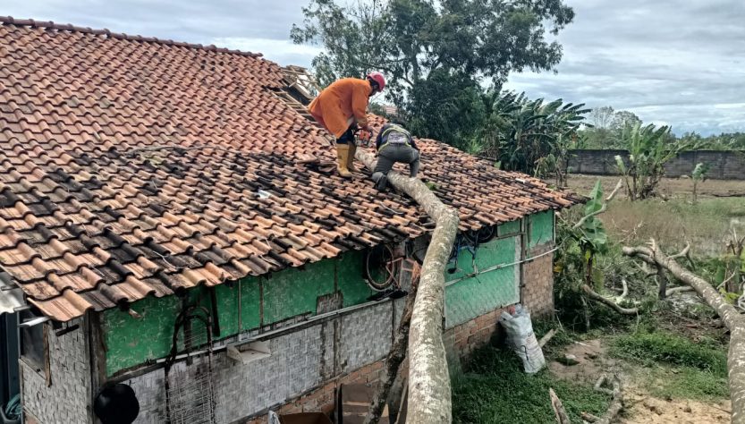 “Kami terima laporan dari sekdes di sana, ada rumah warga yang tertimpa pohon. Atas laporan itu, tim langsung terjun kelokasi untuk melakukan evakuasi.” Bebernya kepada media