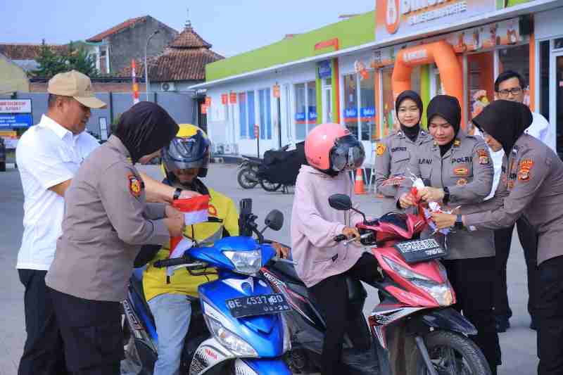 Lampung – Menyambut Hari Ulang Tahun Kemerdekaan Republik Indonesia ke-80, Polda Lampung gelar pembagian bendera merah putih kepada masyarakat dan pengendara di sekitar Jalan Sukarame, Bandar Lampung. Rabu(6/8/25)