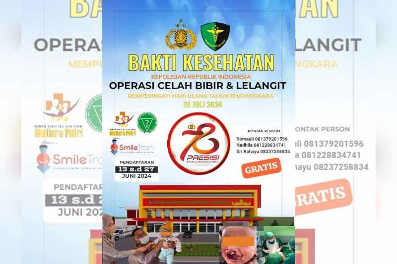 LAMPUNG – Polda Lampung menggelar operasi celah bibir dan lelangit (sumbing) memperingati harlah (hari lahir) Bhayangkara ke-78.