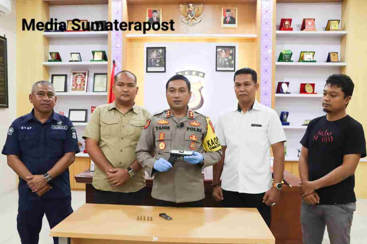 Kapolres Aceh Tamiang AKBP Muhammad Yanis, S.I.K, M.H saat melaksanakan Press Release mengatakan” Hari ini, Kami kembali menerima satu pucuk senjata api rakitan berjenis Pistol, Satu buah Magazine serta Lima (5) butir amunisi yang diserahkan oleh masyarakat hasil dari Penggalangan Satuan Intelkam Polres Aceh Tamiang.”