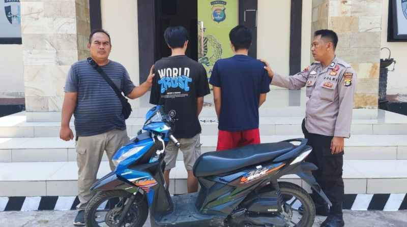 Kedua tersangka, DP (20) dan KH (25) warga Kelurahan Baros, kini ditahan atas kasus penggelapan motor milik korban, Rugaiyah (47), warga Kelurahan Baros, Kota Agung.