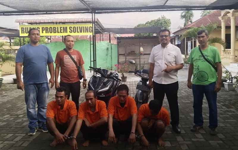 Sumaterapost.co – Sergai | Polsek Perbaungan, Polres Serdang Bedagai (Sergai), paparkan pengungkapan kasus pencurian sepeda motor dengan menangkap empat pria yang diduga sebagai pelaku dan penadah, Senin (29/7), sore.