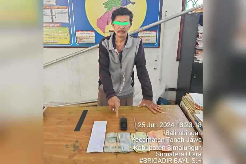 Pada pukul 12.30 WIB, tim tiba di lokasi yang dimaksud dan langsung melakukan pemantauan. Di warung tuak milik Marga Manurung, personel Polsek Tanah Jawa berhasil mengamankan seorang laki-laki bernama Haratua MD Silalahi, 51 tahun, seorang petani yang berdomisili di Kecamatan Jawa Maraja Bahjambi. Saat dilakukan penggeledahan, polisi menemukan barang bukti berupa satu unit handphone merk Nokia warna hitam yang berisi angka tebakan judi jenis Sydney, uang sebesar Rp 10.000, sebuah pulpen warna merah jambu putih, dan selembar kertas tebakan angka judi jenis Sydney.