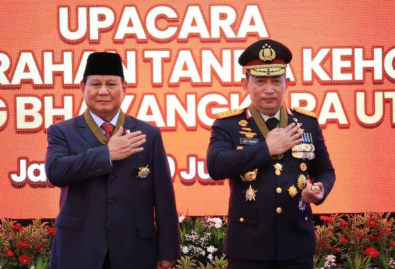 Menteri Pertahanan RI sekaligus presiden terpilih Prabowo Subianto menerima tanda kehormatan Bintang Bhayangkara Utama dari Polri. Penyematan tanda kehormatan itu dilaksanakan di Rupattama Markas Besar (Mabes) Polri, Jakarta Selatan, pada Kamis (20/6/2024) siang.