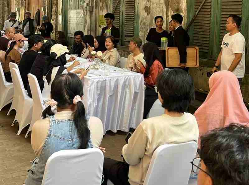 Dipimpin sutradara Ajeng Poernomo dan produser Ahmad Fauzi, “Puja Rasa” tampil dalam dua sesi — pukul 11.00–12.00 WIB dan 13.30–14.30 WIB. Kedua sesi berlangsung hangat dan penuh interaksi, terutama bagi peserta yang duduk di meja seni interaktif. Mereka terlibat langsung dalam aksi panggung, berinteraksi dengan pemain, serta menikmati sensasi artistik yang jarang ditemui di pertunjukan teater konvensional.