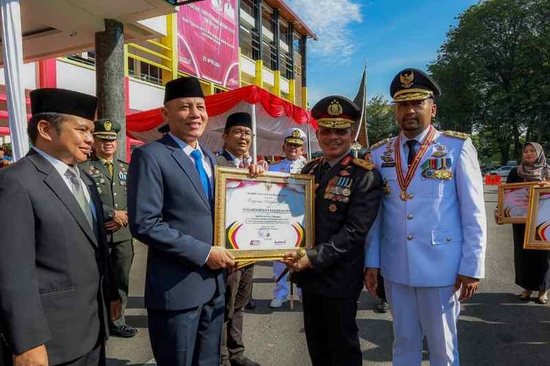 Selain mengikuti upacara bendera memperingati kedua hari besar nasional itu, Bupati Sabar AS juga menerima penghargaan, diserahkan langsung oleh Gubernur Sumbar, Mahyeldi Ansharullah.