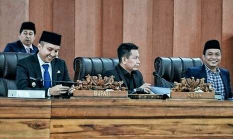 Bupati Panca Wijaya Akbar didampingi Sekda H Muhsin Abdullah dan Kaban Bapeda Taher Ritonga menyampaikan bahwa Pemerintah Daerah Ogan Ilir mengucapkan apresiasi dan terimakasih sebesar-besarnya terhadap tujuh pandangan umum fraksi DPRD Ogan Ilir yang menjadi bahan evaluasi pemerintah daerah dalam pengambilan segala kebijakan pemerintahan untuk mensejahterakan masyarakat.
