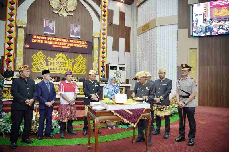 Rapat paripurna tersebut dipimpin ketua DPRD Suherman dihadiri Bupati H.Riyanto Pamungkas, Bupati Pringsewu Pertama H.Sujadi, unsur Forkopimda, anggota DPRD, perangkat daerah, instansi vertikal, tokoh masyarakat, serta berbagai elemen masyarakat Kabupaten Pringsewu.