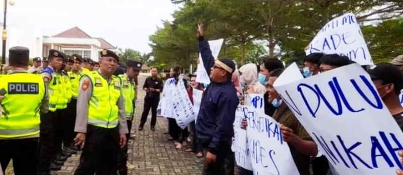 “Tadi tuntutannya ada beberapa hal yang kaki pila menjadi dua yang pertama masalah etika, pola yang dilakukan pemerintahan yang dilakukan oleh kepala desa kemudian yang kedua masalah hukum terkait pungli dan sebagainya,” kata dia.