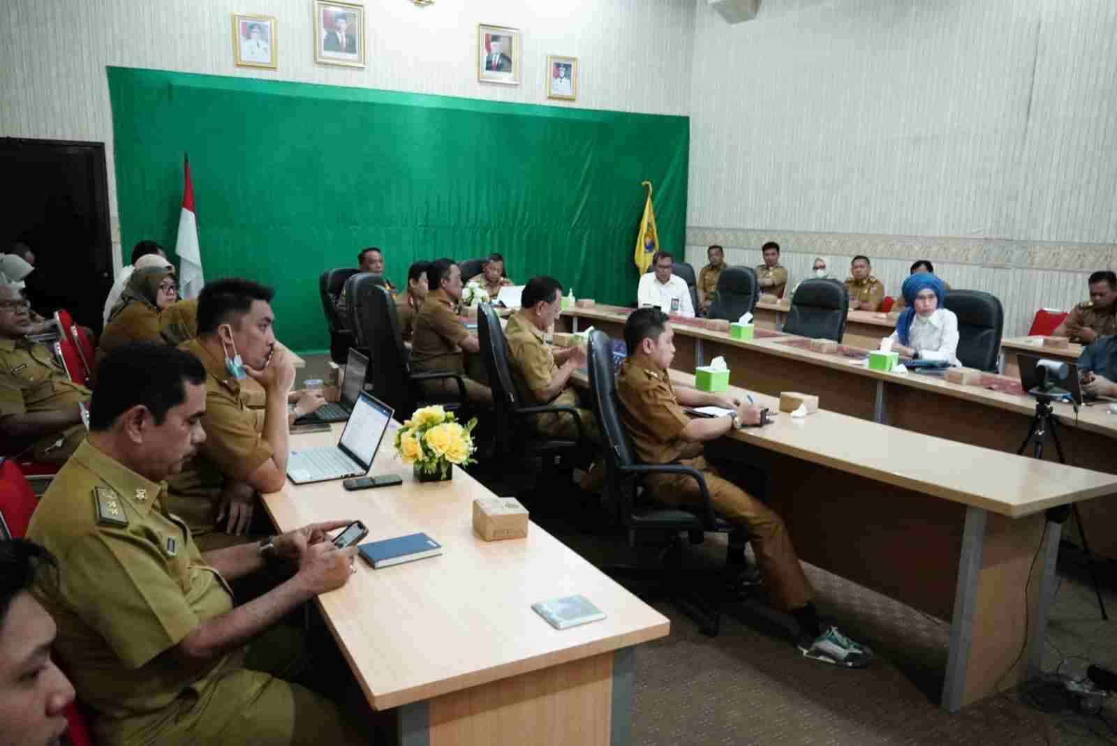 Bandar Lampung – Pemprov Lampung diwakili oleh Asisten Perekonomian & Pembangunan Setdaprov Lampung, Kusnardi, mengikuti Rapat Koordinasi Pengendalian Inflasi Daerah yang dipimpin langsung oleh Menteri Dalam Negeri secara daring, di Ruang Command Center Dinas Kominfotik Provinsi Lampung, Senin (9/1/23).