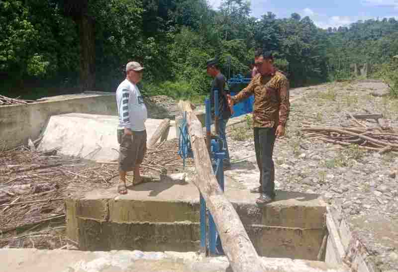 Sumaterapost.co | Tanggamus – Pasca meluapnya air Sungai Pihabung, Kepala Pekon Sukabanjar, Kecamatan Kotaagung Timur, Yovi Yanas bersama aparatur Pekon setempat melakukan peninjauan ke lokasi bangunan pintu air Way Pihabung di Dusun Pihabung, Pekon setempat yang baru selesai dibangun.