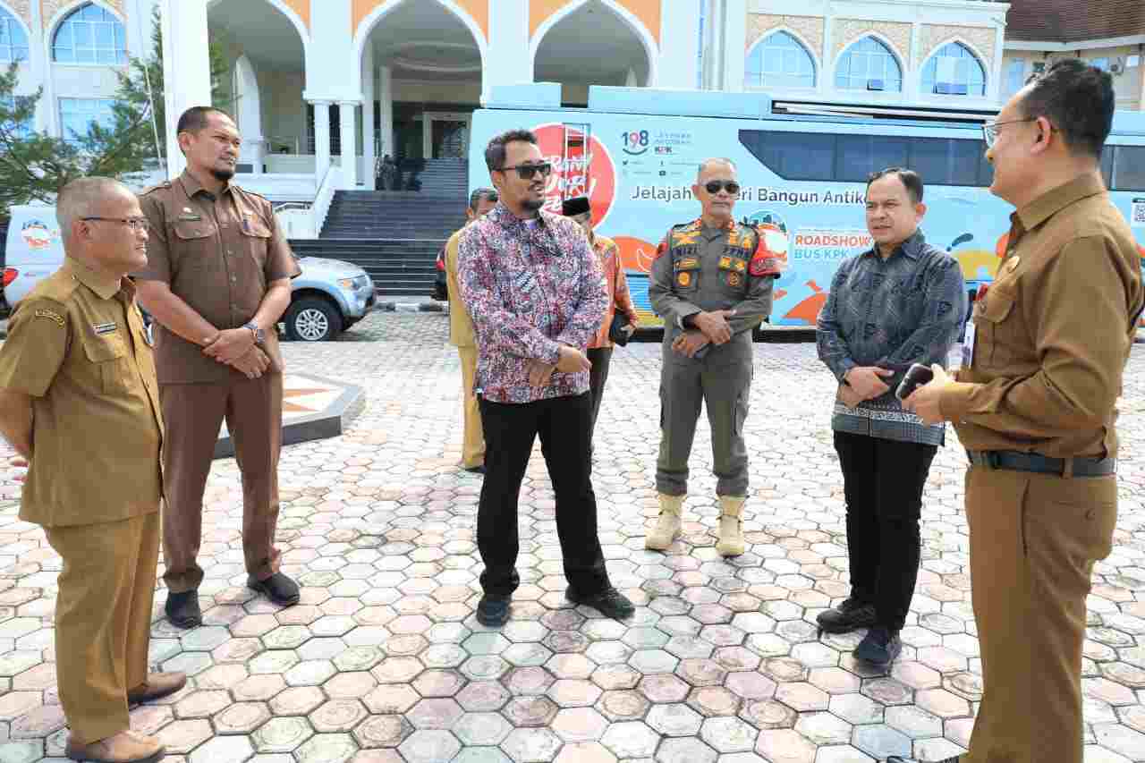 Sumaterapost.co | Lhoksukon – Pemerintah Kabupaten Aceh Utara menyambut baik kedatangan Roadshow Bus KPK RI 2023 di halaman kantor bupati setempat, Selasa 31 Oktober 2023. Kedatangan Roadshow Bus KPK ini dalam rangka ‘Jelajah Negeri Bangun Antikorupsi’.