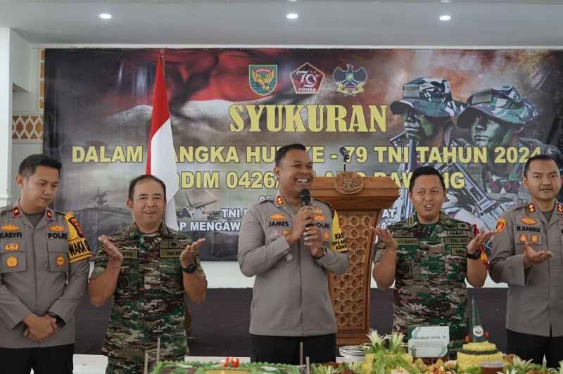 Tulang Bawang – Kapolres Tulang Bawang, AKBP James H Hutajulu memberikan surprise alias kejutan kepada Komandan Kodim (Dandim) 0426/Tulang Bawang, Letkol Kav Delvy Marico dan jajaran dalam rangka ucapan selamat HUT TNI ke-79.