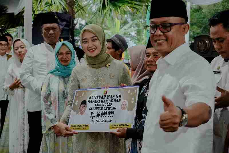 Dalam kegiatan Safari Ramadan ini, Wakil Gubernur Jihan Nurlela bersama Bupati Ardito Wijaya juga menyerahkan sejumlah bantuan, diantaranya Santunan Anak Yatim, Bantuan untuk Masjid, Sertifikat Halal bagi UMKM, dan Paket Peralatan Pembuatan Pupuk Cair. (Dinas Kominfotik Provinsi Lampung).
