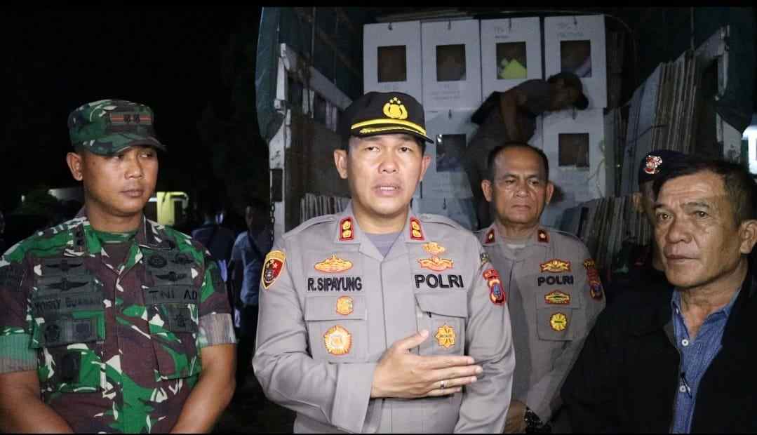 Sumaterapost | Simalungun – Kapolres Simalungun AKBP Ronal FC Sipayung bersama Dandim, Danramil, Camat dan Kapolsek juga dari Satuan Brimob di Kantor Kecamatan Tanah Jawa.Hari ini kita sudah mengkompulir dan mengumpulkan seluruh logistik surat suara termasuk perlengkapan-perlengkapanya dari nagori-nagori yang ada di wilayah kecamatan tanah jawa sebanyak 12 nagori. Rabu, (15/03/2023).