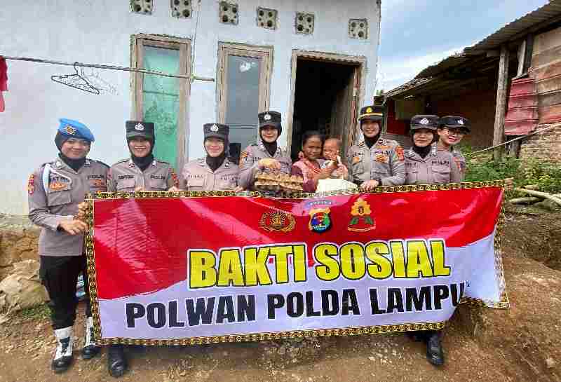 Bandar Lampung – Polisi wanita (Polwan) Polda Lampung melaksanakan kegiatan bakti sosial di Kelurahan Beringin Raya, Kecamatan Kemiling, Kota Bandar Lampung, Jumat (7/3/2025).