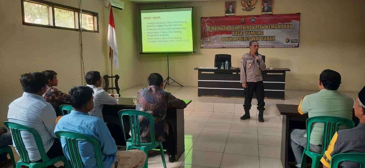 Kapolres Way Kanan AKBP Pratomo Widodo melalui Kompol Suharjono dalam sambutannya menekankan pentingnya peran Satlamling dalam menjaga keamanan dan ketertiban lingkungan.