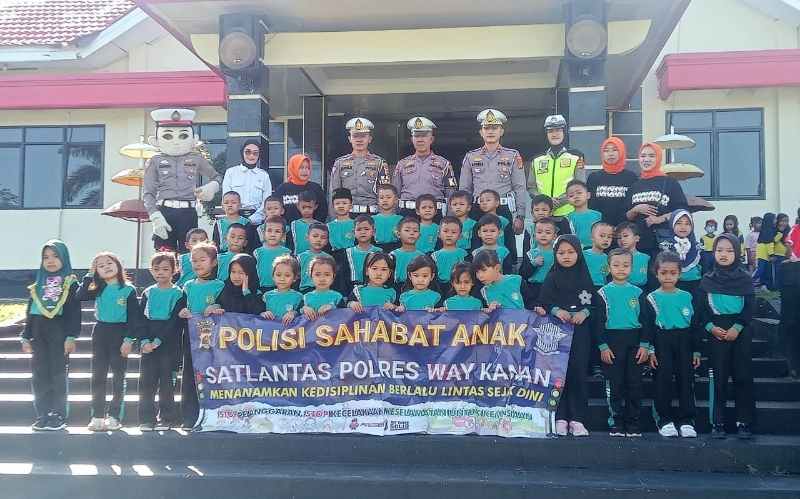 Kegiatan dipimpin Kaurbinopsnal Satlantas Polres Way Kanan Iptu Boby yang diikuti personel Satlantas Polres Way Kanan dan anak-anak usia dini dari Kecamatan Umpu Semenguk Kabupaten Way Kanan.