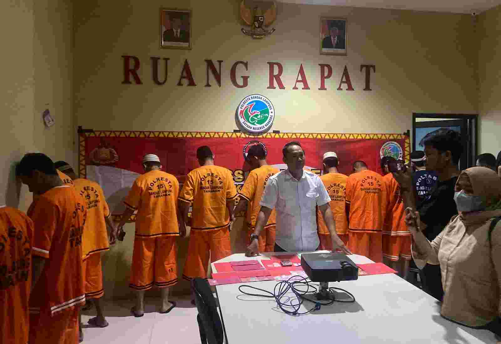 Dalam konferensi pers yang digelar di ruang Satres Narkoba Polresta Bandar Lampung, Kasat Resnarkoba Polresta Bandar Lampung Kompol Gigih Andri Putranto mewakili Kapolresta Bandar Lampung Kombes Pol Ino Harianto, S.I.K, M.M., menjelaskan, dari 16 tersangka yang diamankan merupakan hasil ungkap kasus selama bulan Januari 2023.