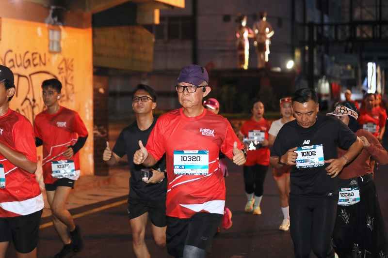 Dalam kesempatan itu, Sekdaprov Fahrizal melepas peserta run 10K sekaligus ikut serta dalam kategori tersebut.