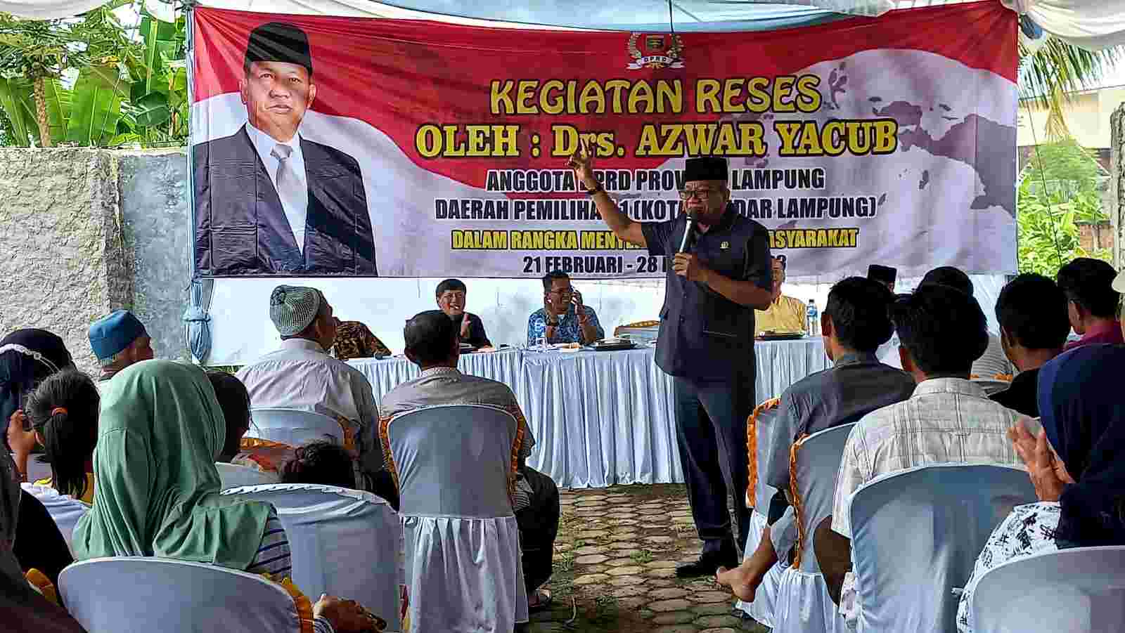Bandar Lampung – POLITISI Partai Golkar dari Dapil 1 Kota Bandar Lampung, Drs.H.Azwar Yacub hari Selasa (21 februari 2023) melakukan serap aspirasi (reses) dengan konstituen nya. Kali ini Anggota DPRD Lampung enam periode ini mengunjungi ke Kelurahan Labuhan Ratu Raya – Jln. Raja Ratu Gg Sejahtera. Turut mendampinginya H Mawadi Soubier, SH, MH (tenaga ahli DPRD Lampung sekaligus Sekretaris Umum DPP IKAM Pagardewa Provinsi Lampung), Sudiyanto, SE, SH (wakil ketua bidang OKK Depidar VII SOKSI) Lampung, Adriantoni Iksir (wakil ketua DPP IKAM Pagardewa) Provinsi Lampung dan beberapa kader Partai Golkar.