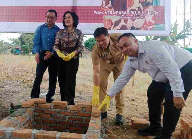 SERGAI, Sumaterapost.co | Wakil Bupati Serdang Bedagai, Adlin Tambunan, mendukung penuh pembangunan Hall Ametatheton dan sarana UMKM di Dusun 1, Desa Firdaus, Kecamatan Sei Rampah. Pembangunan tersebut ditandai dengan peletakan batu pertama pada Senin (3/3/2025).