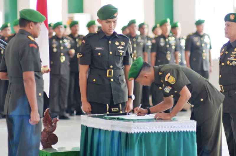 Kegiatan yang ditandai dengan pelepasan tanda jabatan dan pemasangan tanda jabatan kepada pejabat baru, dilanjutkan dengan penandatanganan Naskah Berita Acara Serah Terima dari pejabat lama kepada pejabat baru dihadapan Danrem 043/Gatam.