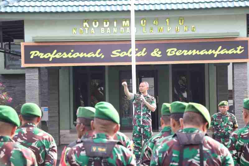Bandar Lampung – Dalam rangka memantapkan kesiapsiagaan personel serta menjaga soliditas menjelang Hari Raya Idul Fitri 1447 H, jajaran Babinsa dan seluruh prajurit Kodim 0410/KBL melaksanakan apel sekaligus Jam Komandan yang dipimpin langsung oleh Komandan Kodim 0410/KBL, Kolonel Arm Roni Hermawan, S.H., M.M. Kegiatan yang berlangsung di Lapangan Apel Kodim 0410/KBL, Jl. Imam Bonjol, Kel. Gunung Agung, Kec. Langka Pura, Kota Bandar Lampung pada Senin (16/3/2026) ini diikuti oleh para Perwira Staf, Danramil, serta seluruh Prajurit dan PNS jajaran Kodim 0410/KBL.