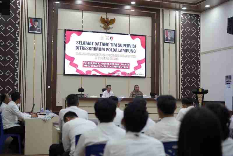 SumateraPost.co/Tulang Bawang – Direktorat Reserse Kriminal Umum (Ditreskrimum) Polda Lampung melaksanakan kegiatan Supervisi Semester II Tahun 2025 di Aula Wira Arya Polres Tulang Bawang, pada Senin (27/10/2025) pukul 10.00 WIB.