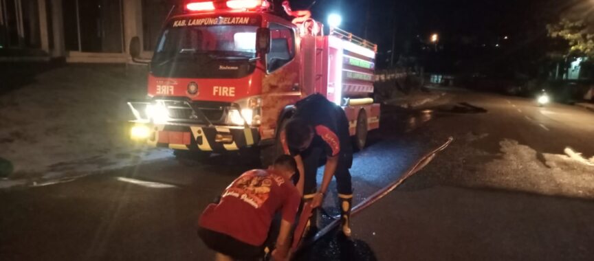 Sumaterapost.co – Tim Damkar dan Penyelamatan Kabupaten Lampung Selatan Posko Kalianda gerak cepat padamkan api yang membakar pohon Mahoni, depan Gedung PKK tepatnya di belakang Gedung PMI, Minggu malam, (8/1/23).