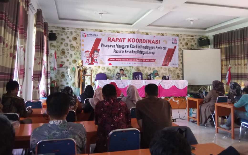 “Hari ini kami melakukan rapat koordinasi penanganan pelanggaran kode etik penyelenggara pemilu dan peraturan perundang-undangan lainnya bersama Panwascam se Pasaman. Mereka ini terus kami tempa pengetahuannya, agar jalan yang berkerikil dan berbatu ke depan nantinya bisa dilalui,” kata Ketua Bawaslu Pasaman, Rini Juita, Kamis (11/5).