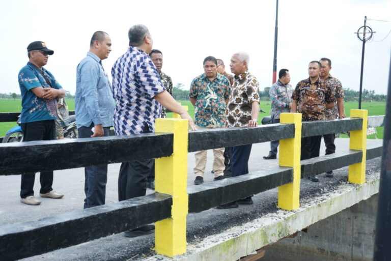 Sumaterapost.co | Asahan – Bupati Asahan H. Surya, BSc didampingi Asisten Perekonomian dan Pembangunan, Kadis PUTR, Kadis Kominfo, Kepala Bappeda meninjau 2 jembatan yang berada di Desa Rawang Lama Kecamatan Rawang Panca Arga, Kamis (26/01/2023).