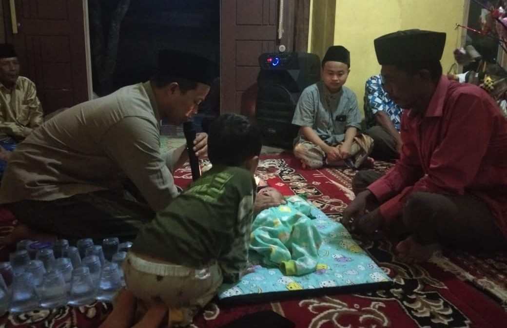 Dalam tasyakuran Marhaban anak kedua dari pasangan Indrawan Saputra dan Susi, diselenggarakan pengajian atau marhaban yang dipimpin oleh Ustadz Aris.