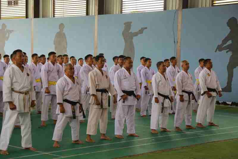 BrimobLampung — Dalam rangka pembinaan dan pengembangan kemampuan fisik serta keterampilan beladiri, Satuan Brimob Polda Lampung melaksanakan kegiatan Ujian Beladiri Karate Kenaikan Tingkat Kyu Perguruan INKANAS Dojo Bintang Gelombang I pada Selasa, 28 Oktober 2025, bertempat di Mako Satbrimob Polda Lampung.