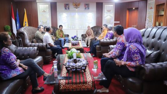 (Unila) : Rektor Universitas Lampung (Unila) Prof. Dr. Ir. Lusmeilia Afriani, D.E.A., IPM., ASEAN Eng., didampingi Wakil Rektor Bidang Perencanaan, Kerja Sama, dan TIK Dr. Ayi Ahadiyat, S.E., M.B.A., menerima audiensi delegasi Dinas Peternakan dan Kesehatan Hewan (Disnakkeswan) Provinsi Lampung, Balai Karantina Pertanian Kelas I Bandar Lampung dan Persatuan Dokter Hewan Indonesia (PDHI) Cabang Lampung, Jumat, 19 April 2024, di ruang kerja Rektor, Gedung Rektorat.