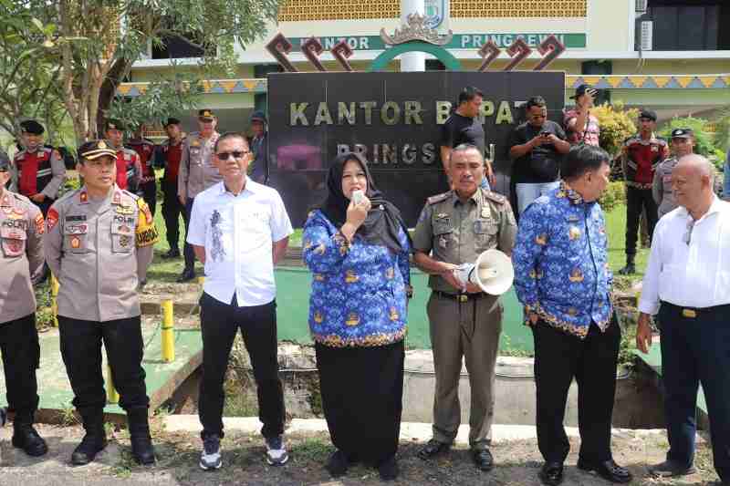 Pringsewu – Kami mendengar dan memahami aspirasi masyarakat. Kami juga tahu bagaimana kehadiran Pak Yunnus telah membawa perubahan bagi Pringsewu. InsyaAllah, kami akan menindaklanjuti, pernyataan ini disampaikan Wakil Bupati Pringsewu Umi laila saat turun langsung menemui peserta aksi damai di depan Kantor Bupati Pringsewu, Senin (17/03/2025).