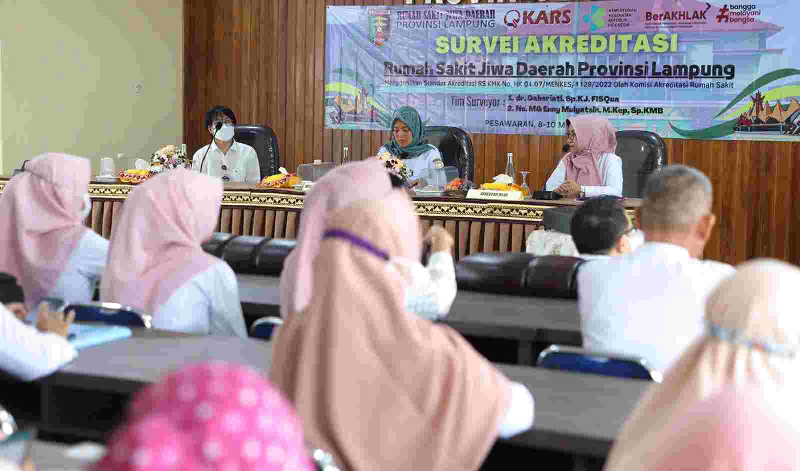 Sementara itu, Direktur RSJD Lampung Nuyen Meutia Fitri menyampaikan bahwa kegiatan survey ini bertujuan untuk meningkatkan mutu pelayanan rumah sakit. Selain itu, meningkatkan keselamatan pasien rumah sakit, meningkatkan perlindungan bagi pasien, masyarakat, sumber daya manusia rumah sakit dan rumah sakit sebagai institusi. Dan mendukung program pemerintah di bidang kesehatan .