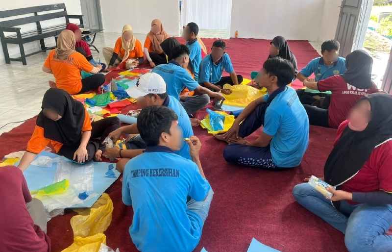 Limbah plastik dikumpulkan dari rumah sampah Lapas Kotaagung untuk diolah menjadi produk bernilai jual oleh 25 warga binaan di Aula Barat Lapas Kotaagung. Didampingi langsung oleh Soni Octariza yang merupakan pelaku UMKM limbah plastik, warga binaan diajarkan bagaimana cara mengolah limbah plastik menjadi bahan baku untuk dapat dibuat produk bernilai guna.