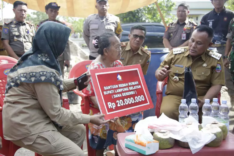 Warga yang mengalami rumah roboh akibat rumah yang tidak layak huni tersebut mendapat bantuan sebesar 20 juta rupiah dari Program Geserbu Kabupaten Lampung Selatan.