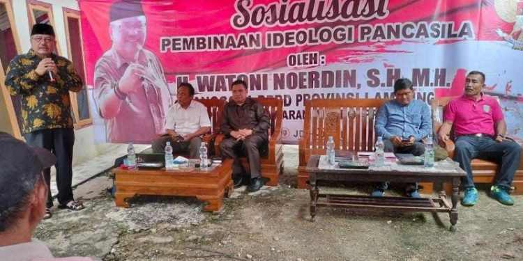 “Pancasila digali dari peradaban bangsa mulai sabang – merauke. Artinya, semua terakomodir tanpa membeda – bedakan suku, agama, ras, dan budaya,” kata Anggota DPRD Provinsi Lampung, Watoni Noerdin, saat menggelar sosialisasi Pembinaan Ideologi Pancasila (PIP), dihadapan masyarakat Sidoharjo, Kecamatan Pringsewu, Kabupaten Pringsewu. Minggu (19/02/2023).
