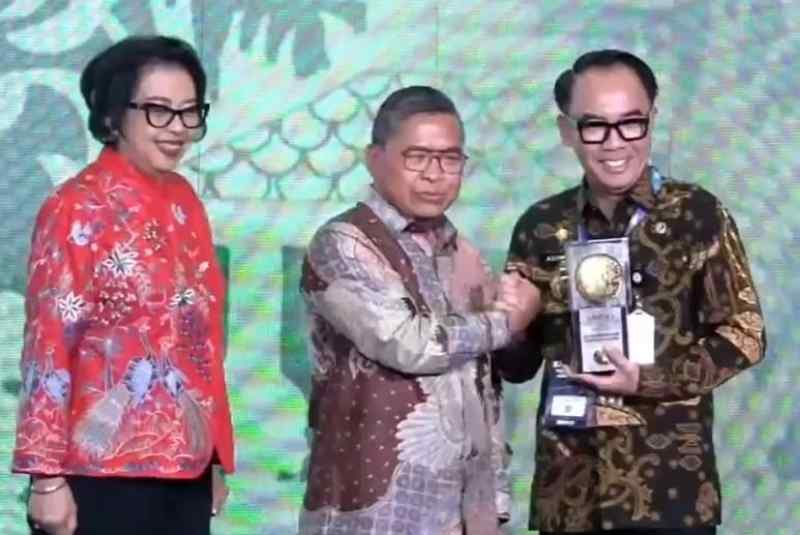 Wakil Menteri Lingkungan Hidup dan Kehutanan Republik Alue Dohong memyerahkan Piala Adipura Kabupaten Way Kanan Tahun 2023 kepada Bupati Way Kanan H. Raden Adipati Surya, di Auditorium Dr. Soejarwo, Gedung Manggala Wanabakti Kementerian Lingkungan Hidup dan Kehutanan Di, Jakarta Pusat, Selasa (5/3/2024).