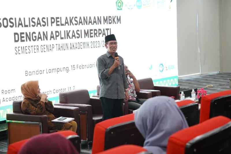 Bandar Lampung (SP) – Lembaga Penjaminan Mutu (LPM) Universitas Islam Negeri (UIN) Raden Intan Lampung (RIL) menyelenggarakan kegiatan sosialisasi aplikasi “Merpati” (Merdeka Belajar Perguruan Tinggi Keagamaan Islam) untuk Merdeka Belajar Kampus Merdeka (MBKM), Kamis (15/02/2024).